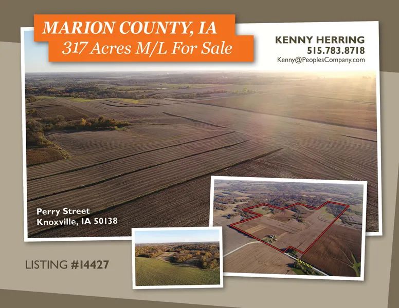 Diverse, Quality Farmland offered for sale in Marion County, IA. This property totals 317 acres m/l of individually distinct components, that when combined, offer a unique opportunity for agriculture, conservation, and recreation. 179 acres m/l of the property is currently in row crop, corn/soybean rotation. Soil types include Haig, Grundy, Pershing and Nira with slopes from zero to 9 percent across most of the tillable acres. Great laying, highly productive land. The farm also has 58.80 m/l acres enrolled in CRP with an annual payment of $10,912 providing additional income as well as wildlife habitat. The farm has a healthy population of deer and turkey as well as upland game birds, both quail and pheasant. A great mix of recreation and income! This great property is located in section 28 of Franklin Township, Marion County, IA.