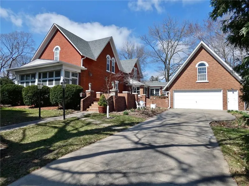This equisite late 1800's brick Victorian home is loaded with Old World charm throughout. Three plus bedrooms & 2 baths - European style kitchen with darling breakfast nook off kitchen.. Inviting sunroom with many windows. Spacious kitchen with updated Quartz island and counter tops. Several roll out drawers in cabinets. All kitchen appliances will stay. New built in oven/ microwave. Build in pantry and spice cabinet. Formal dining with beautiful wall to wall built-in glass cabinets. Seller started with upstairs - 2 BR remodel but additional updates (just paint and flooring) to be completed at buyer's preference. Mantle mirror and matching pieces below will stay. Bonus room approx 600 sf) above garage is heated and cooled and allows for additional storage or living space. Reserved: - electric fireplace - wall light scone in LR - area rugs.