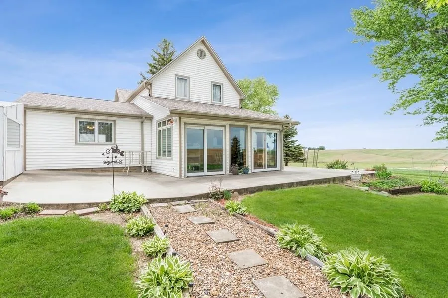 Rural Iowa acreage with countryside views and lots of privacy! Great hobby farm potential - New roof 2022 - 2 X 6 walls - 3 season room with track lighting and shelving and awesome view - vinyl siding - Just 1 1/2 miles of gravel - Pella windows with slim shades (some newer) - updated kitchen with Medallion solid oak cabinets - main level master bedroom - main level laundry - NO covenants - updated plumbing - fire pit area - 18 x 4 ft. pool can stay also with fenced in pool area to cool off in! Lower level has 2nd bath - work area with cabinets. 2 big metal buildings with concrete (one heated and insulated) -She shed for gardening and several other s Reserved: Bar stools in lower level - air compressor and air lines in shop area. All shelving in shops and lights. See cards in buildings that say what stay and what is reserved. All Yard art.