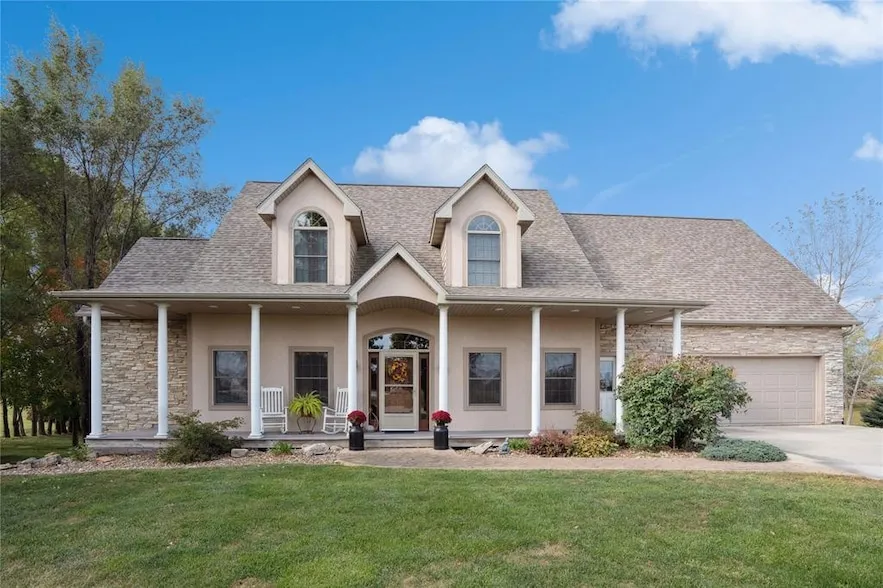 Hard to find 4.97 acre acreage close to town with 2 parcels, large 1.5 story home built in 2004 with zero entry, mature trees, covered deck, extra large double attached garage and double oversized tuck under garage for the handyman (even has its own driveway). Gorgeous flat yard for the kids to play offering privacy. Main floor offers: large primary bedroom with HUGE walk-in closet & full bath, solid wood doors, hardwood, 1/2 bath, large great room which opens up to kitchen, pantry, laundry, water closet & office. Upstairs offers 3 large bedrooms with walk-in closets, full bath with dual sinks. Wall at end of the hallway you could open up and finish into a huge game room or 6th bdrm (door/window/closet are all framed-you can view it from the garage attic). Walkout bsmt: 9' ceiling, plumbed for kitchen, needs flooring, bedroom, bath, family room and wonderful storage. 2 staircases to base...