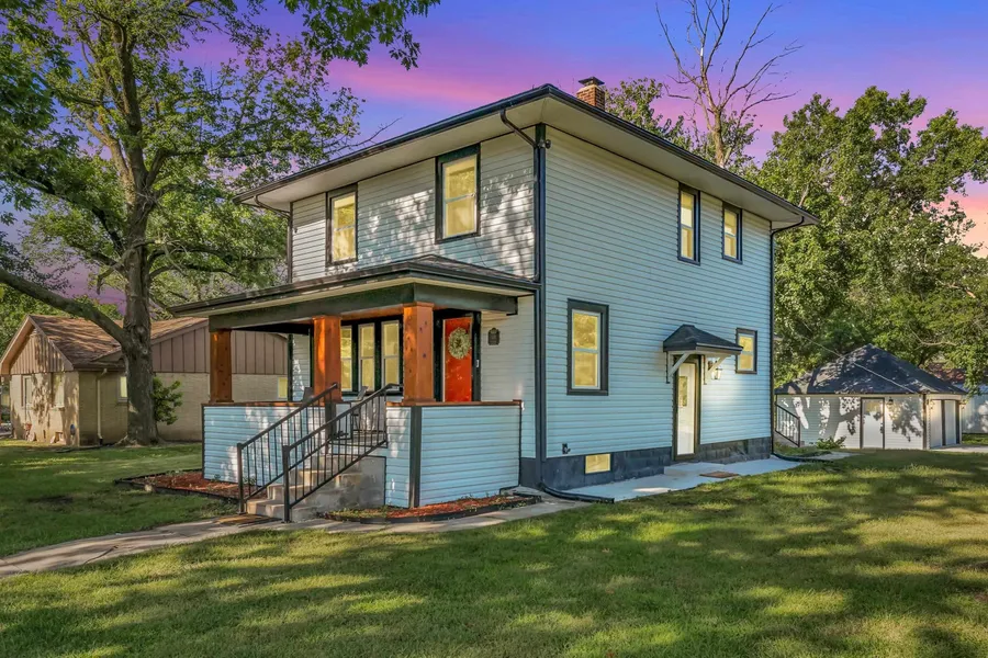 Charming Meets New in Peabody, KS! This beautifully renovated home is the perfect blend of classic charm and modern upgrades, sitting proudly on a spacious corner lot in the heart of Peabody. From its preserved wood floors to the brand-new finishes throughout, this home is truly move-in ready with style and comfort in every detail. Main floor features include an updated kitchen with sleek new stainless steel appliances, formal dining room perfect for hosting, two living spaces offer flexibility for relaxing or entertaining, a convenient main floor laundry room and a half bath. Upstairs living includes a spacious primary bedroom with a stunning ensuite bathroom featuring a large tiled shower, 2 additional bedrooms and a second full updated bathroom. Major upgrades for this home include new vinyl siding, windows, new roof and guttering, new plumbing, electrical, and HVAC systems Outside, enjoy a roomy 2-car detached garage and the perks of a corner lot with extra yard space, more natural light, lovely curb appeal and a covered front porch for relaxing.