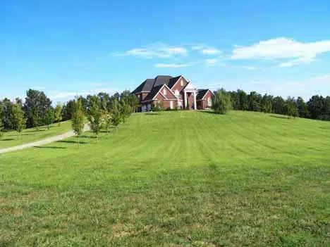 Custom luxury home on 92 acres M/L with a 10 acre wine vineyard located just a short distance from the Lebanon Country Club in Lebanon, KY. Enter the property through your own private 6/10 mile blacktopped driveway to a spectacular 2-story home sitting on a rise backing up to wooded rear yard. Enter into the 2-story foyer with winding grand staircase with an open 2nd story landing. Formal dining room, 2-story living room with coffered ceiling and bookcases, fireplace and three sets of French doors leading out to a large private deck and open archway to 2nd floor piano balcony. Kitchen-den-dining combo has granite counter tops, fireplace with bread warmer, and large breakfast area with adjoining covered deck. Den is 2-story with floor- to-ceiling windows.
