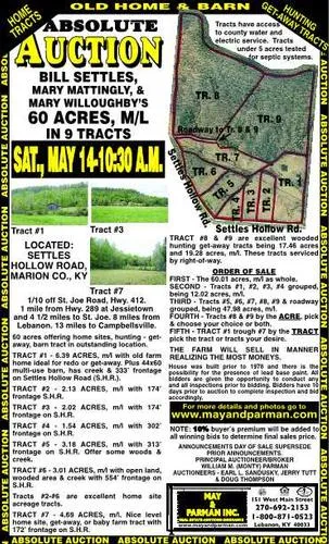 Bill, Rita and Regina Settles' 60 Acres, ML. Located on Settles Hollow Road Just off St. Joe Road in Marion County.