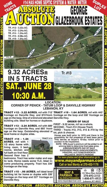 Located: Penick Tatum Loop & Danville Highway Lebanon KY
