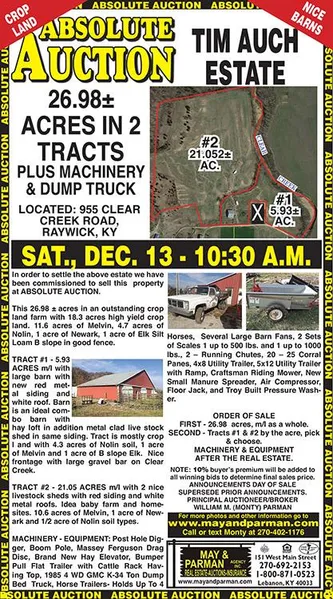 LOCATED: 955 Clear Creek Road in Raywick KY.