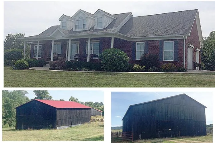 Home and 104.21 acre cattle farm. Custom built brick home with all the extras. Home has nice entry foyer opening to office on one side & large dining room on the other. Spacious great room has adjoining cathedral ceiling sun room with custom woodstove, lots of windows with view of deck & beautiful country side, open kitchen with breakfast bar, granite counter tops and stainless steel appliances. Master suite with large bedroom, nice bath with raised double vanity with custom countertops, separate commode room, jetted tub, separate shower & large walk in closet. Separate wing has full bath and 2 bedrooms. The entire first floor is hardwood and ceramic tile. Second floor has large bedroom with sitting area and storage. True 2 car attached garage, roomy front porch and huge rear deck. Outside finds long winding blacktop drive to unbelievable open & wide concrete parking pad with detached 40 x 50 3 car garage/shop with water, electric & stubbed in for bath, a 24 x 36 3 stall horse barn with tack room. This is a true set up cattle operation with 36 x 80 combo barn, plus 52 x 60 cattle hay barn with squeeze alley, 180 degree sweep shoot, electric & water. Farm has alley way to connect to separate field and barn working areas, several ponds and automatic water tanks on county water. Call Monty Parman 270-402-1176.
