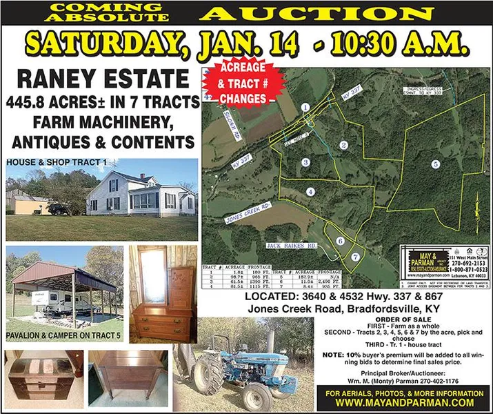 445 Acres M/L. In 7 Tracts, Farm Machinery, Antiques & Personal Property
