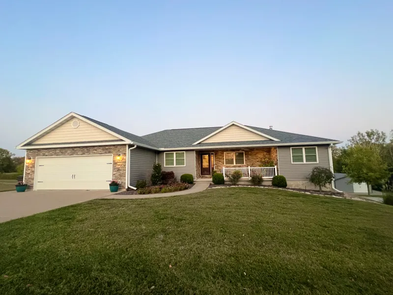Nestled on 3 acres just outside the city limits of Hannibal, this spacious 3 Bedroom, 3.5 Bath home offers serene country living with modern amenities. Enjoy the convenience of main level living with a cozy gas fireplace in the Living Room, a Primary Suite featuring a large walk-in closet with direct access to the Laundry Room, Full Bath w/ Jacuzzi Tub. Mud Room features 2 built in cubbies, laundry and sink. Attached 2-car garage provides easy access to the home, while the lower level boasts a second 2-car tuck-under garage, a full walkout basement with a covered patio, safe room & 1.5 bathrooms. Perfect for a home-based business, the lower-level office has separate exterior access and parking. The yard is beautifully manicured & the 24x36 outbuilding has a concrete floor, overhead door, and electric service providing additional storage & workspace. Relax on the covered deck off the breakfast nook, overlooking the lake with floating dock, perfect for fishing in your stocked waters.