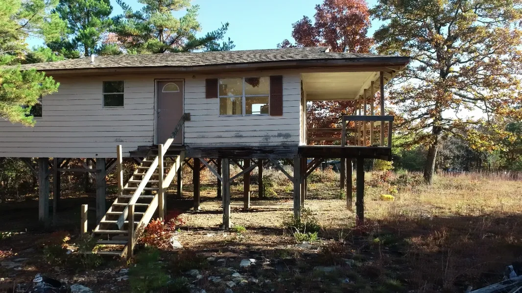 Diamond in the rough is back on the market. It's probably destiny because it is available for YOU!. The Motivated Sellers offer a piece of the Ozarks and your own Blank Canvas home, which is priced to sell! The house is on stilts & capitalizes on a seasonal lake view which may be vastly improved! This fixer-upper is located in a secluded area formerly known as Dugginsville, AR on a ''dead end'' road, in the Ozarks. Once you've made the necessary improvements, you will have an excellent vacation getaway for relaxing and playing near the beautiful Bull Shoals Lake. Or if you prefer, create your own self-sufficient prepper/hobby farm in the middle of a large peninsula that is surrounded by lake on 3 sides. This was a former foreclosed property (owners prior to this seller) that was literally stripped down to the bare bones. The upside is although the property needs work, you get to make all the decisions rather than change someone else's style preference.. According to the Marion County, AR Assessor's office, the home is 35 years old, but the actual construction date is unknow. For listing purposes, the home was built in 1987. New Roof installed in July 2021. Property has been surveyed and reflects 4.4 Ac M/L., Assessor states 4.9. Great Hunting on site and the Horses on the property belong to a neighbor. Bull Shoals Lake glistens through the trees. Electric is at property, meter has been pulled and the house is wired. It is the sellers belief you will have to have a septic tank installed but the status of a Septic Tank is Unknown. House has been plumbed & wired. You will have to install a well. To assist in costs for renovations, available to purchase are: Upper, Lower Cabinets, Sink, & counter top for $1,000 and Breaker Box with Breakers for $500.