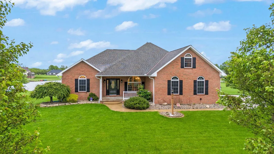 A quick golf cart ride to the 18-hole Marion Country Club Golf Course, Pool, and Club House brings you to 2272 Flagstick Drive, a luxurious waterfront residence nestled in the prestigious Eagle Creek community. This meticulously maintained 4-bedroom, 3.5-bathroom home offers 4,024 sq. ft. of elegant living space on a serene 0.56-acre lot, providing breathtaking lake views and unparalleled comfort. This gorgeous home boasts a spacious great room, gourmet kitchen, owner's suite retreat, four-car garage, many modern amenities, including a Generac home generator, instant hot water system, a newer AC unit, custom closet in primary suite, and a lower-level walkout. Step outside to a beautifully landscaped yard with direct lake access, perfect for paddle-boating, fishing, or simply relaxing by the water. This exceptional home combines luxury, functionality, and a prime location, making it a rare find in the Eagle Creek community. Don't miss the opportunity to make this dream home yours.