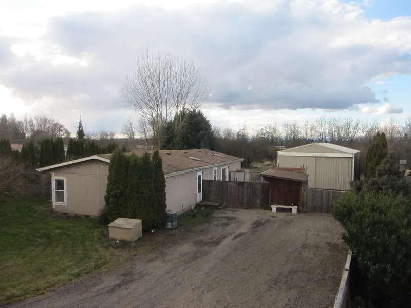 A perfect opportunity to own small acreage close to community center, shopping and more! This private parcel is surrounded by trees. 30x24 shop w/concrete floor, electricity, loft and workshop. Home is one-level, well laid out w/master on one side of home, other 2 bedrooms opposite side. Kitchen w/range, dishwasher, disposal. Vaulted living area. Dining w/ceiling fan.