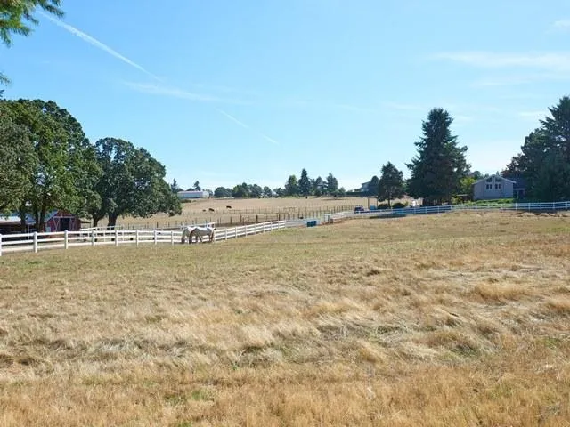 Beautiful acreage with a very gentle slope makes for great views to watch your horses or livestock with incredible sunrises and sunsets. Relax in the shade under the mature maple, oak and fir trees. Lots of outdoor living space here.