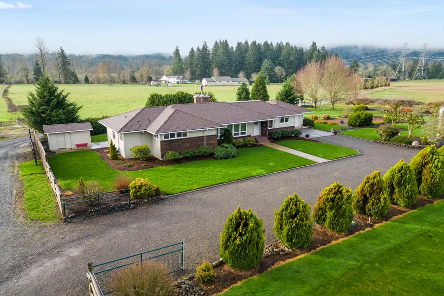 Immaculate single-story home completely remodeled with quality finishes throughout and wired for full-home backup generator + new roof Dec.2023. Enjoy ample natural light from the newer windows on main level which includes an open dining room and living room with woodstove, 3 bedrooms, 2 bathrooms, and stainless-steel appliances in kitchen + bar seating. Mostly finished basement with family room, office, large pantry, laundry room, and storage areas. Private, covered, and open patio areas great for entertaining or relaxing in the backyard. Attached, finished 2-car garage, open carport, and gravel areas provide ample parking. Plenty of space for toys, critters, and farm equipment in the well positioned outbuildings including shop, greenhouse, barn, machine shed, feeder barn, and chicken coop. Remarkable setting and grounds with thoughtful landscaping surrounding the residence with sprinkl...