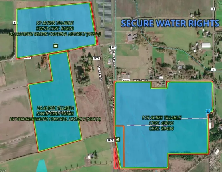 This 240-acre farm comes with excellent water rights. It was previously used for forage crops for an organic dairy and more recently for grass seed crops. If installed with drain tile, this farm has the potential to produce excellent row crops and permanent crops, as evidenced by neighboring properties. A bid for drain tile installation is on file. Additionally, 5 acres and a hay shed are leased. The property is adjacent to a Union Pacific main line.