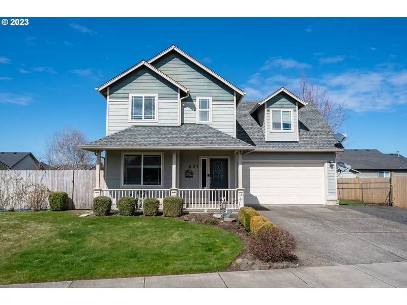This lovely home situated in the charming town of Stayton, and boasts and attractive exterior. Enjoy peaceful views of the green space across the street while relaxing in the comfort of your own home. Easy care laminate wood floors. The large and versatile bonus room upstairs features dormer window, allowing plenty of natural light. vaulted ceilings, which adds a touch of elegance. Recent updates include: Generator, RV hookup, water heater, appliances, sprinklers, landscaping