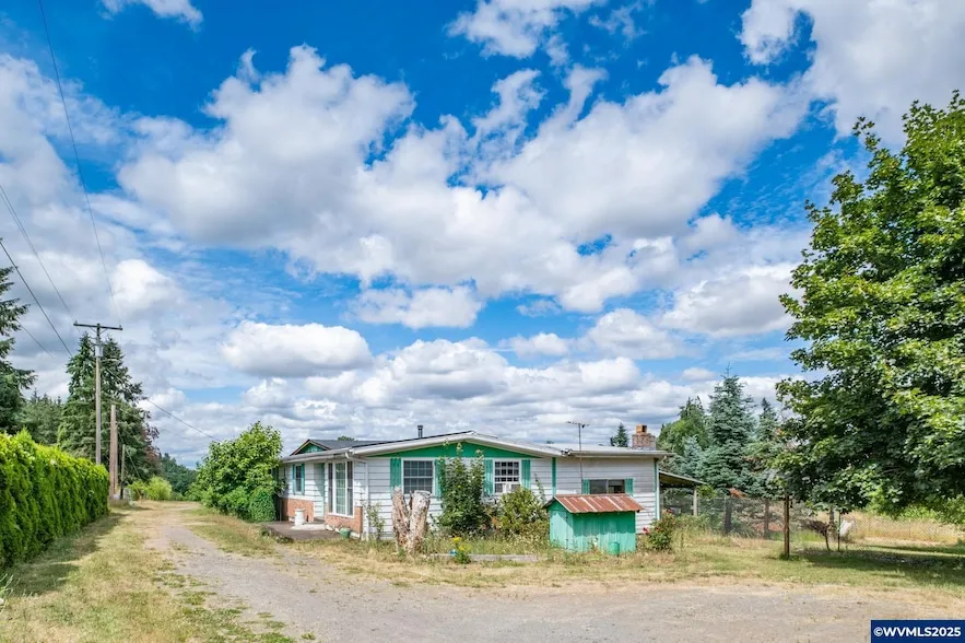 Great Aumsville location on 3 acres! Older manufactured home with addition for spacious living. Home is complete with 3 bedrooms, 2 baths, a large bonus room with a brick fireplace & a spacious mud room too. Original kitchen with pantry. There are outbuildings, a pond & fruit trees. Vinyl crawlspace, full slab under the adition. Lower taxes due to farm deferral. Just waiting for the new owner to make it shine again! Tax Acct #560087/123871