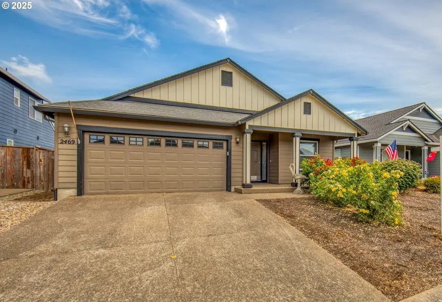 Welcome to this inviting one level 3-bedroom, 2-bath home that blends comfort, function, and scenic beauty. From the moment you arrive, the covered front porch offers a warm welcome and the perfect place to relax and enjoy your surroundings. Step inside to discover a thoughtfully designed layout featuring a vaulted great room, creating an open, airy atmosphere. The spacious kitchen flows seamlessly into the main living area, perfect for everyday living and hosting gatherings alike. A private home office provides a quiet, dedicated space to work or create, while the primary suite offers a peaceful retreat with a walk-in shower for convenience. Out back, enjoy the ease of a low-maintenance yard that opens to picturesque farmland with sweeping territorial views-a truly serene backdrop with no rear neighbors.