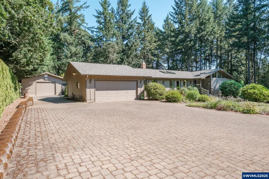 South Salem, Oregon! 2208 sq. ft. ranch style home is nestled on a serene .85-acre, flat land, with a park-like setting. A brand-new roof and skylights, luxurious Brazilian hardwood floors. Gas fireplace in the living rm, library, office room.50x24 hobby shop, 220 V, insulated, hot, cold water. A separate 24 x 14 cottage/studio, possible for a dual living. Attached 2 car garage. Garden shed. Storage shed. Professionally landscaped, gaden beds, English rose garden. Rm for RV, boats. Great place for your pets.