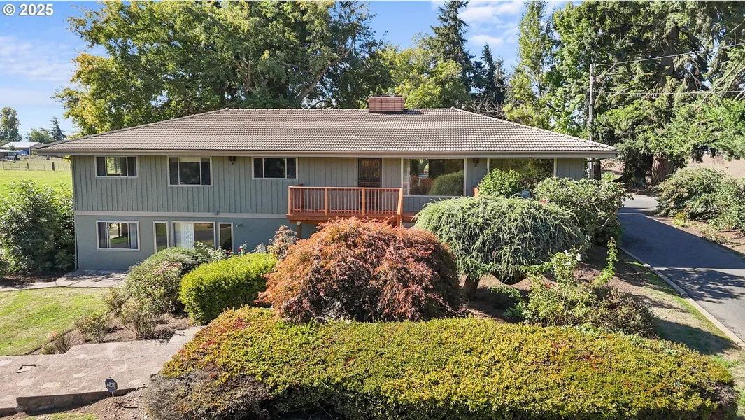 This is a unique opportunity to own country property spanning 8.46 usable acres, conveniently located near city amenities, outlet mall, and easy freeway access. The location on this "no through traffic" road ensures a tranquil environment with peaceful surroundings that guarantee privacy and serenity. The gated circular driveway provides excellent convenience for both entry and exit. The main level encompasses 2112 square feet, featuring spacious living areas that include 4 bedrooms, full bath, large open kitchen with cook island & Corian counters. The expansive 1797 square foot finished daylight basement offers a separate entrance, bedroom, bathroom, large kitchen and wet bar. It affords multiple living possibilities, making it perfect for dual living, home office, or additional rec room space. Recent updates include a new deck, new Heating & cooling system, new well pump, fresh exterior paint, and a refreshed tile roof. Additionally, the property boasts a 30' x 46' workshop with 9' doors, ready for your creative outlet or business needs. Property has nice landscaping, some mature timber and fruit trees.