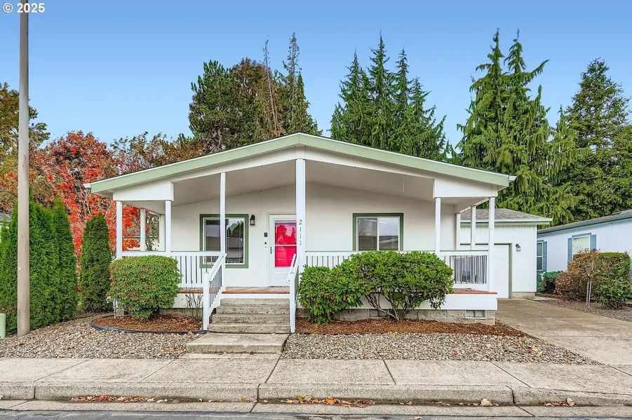 COMFORTABLE LIVING WIHT MODERN UPGRADES! This spacious double-wide manufactured home sits on its own land and offers easy single-level living with great curb appeal. Enjoy relaxing on the vaulted front porch or take advantage of the attached single-car garage and private driveway for added convenience. Inside, the open floor plan creates a bright and welcoming atmosphere. The large kitchen features stainless steel appliances, a skylight, and a pantry, and opens seamlessly to the dining area and vaulted living room-perfect for entertaining or everyday living. The remodeled hall bath includes a stylish walk-in shower, while the utility room provides washer/dryer, storage space, and direct access to the garage. The primary suite is privately located at the back of the home and offers a vaulted ceiling, walk-in closet, and a luxurious attached bath with dual vanities, a soaking tub, and sepa...
