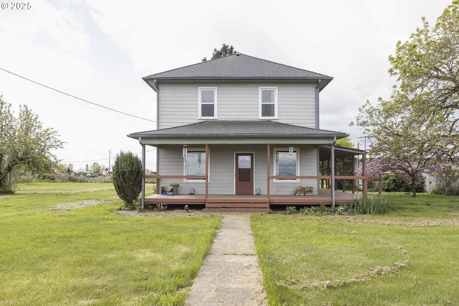 Charming farmhouse situated on 30.38 acres of EFU-zoned farmland is ready for its next chapter-whether you're dreaming of a private retreat, hobby farm, or small agricultural venture. Originally built in 1905 and expanded in the 1970s, the home now offers 4 bedrooms and 2 full baths, including a guest bedroom and a full bathroom on the main level. Family room features a fireplace insert and picture windows that frame views of the south pasture. The kitchen blends rustic charm with everyday functionality. Step outside to enjoy the fenced yard with mature pear and apple trees, a detached garage/shop, and unforgettable sunset views from the west pasture beyond the treed area. Roof replaced in 2021; bathrooms refreshed in 2024 and 2025. A rare opportunity to shape your rural lifestyle on expansive acreage-bring your ideas and make it your own. Last two photos show sunset and hill views from ...