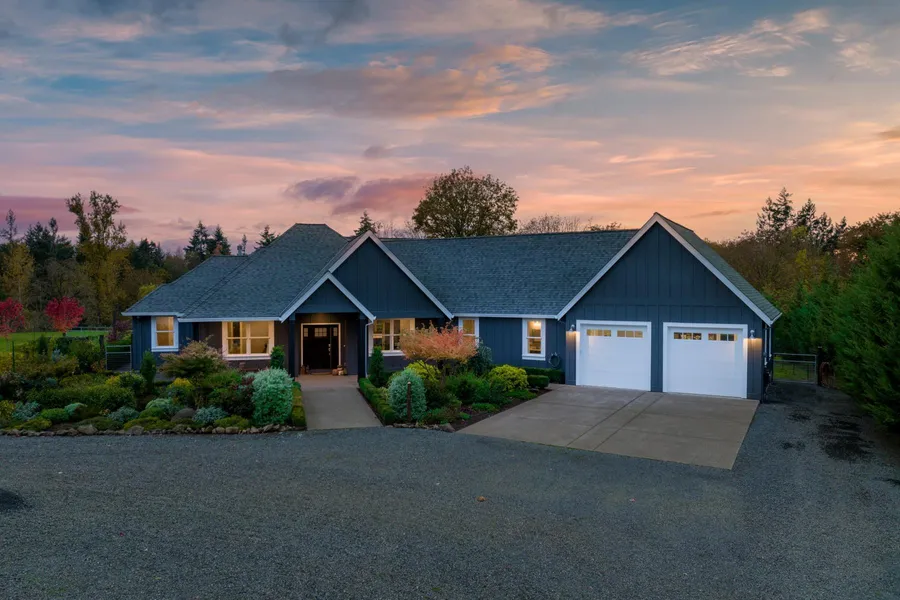 At the gateway to Wine Country near wineries and Champoeg State Park, lies this magical farm set on 43 acres. Formerly a horse facility, this property has been transformed into a stunning wedding and event venue. The 2017 custom-built one-level home offers an open floor plan, hardwoods throughout, a gourmet kitchen, and a well-thought-out floor plan. The event space was built in 2019 with a to-die-for commercial kitchen, a large island with a sink, 2 ADA-compliant baths, a lighted covered deck, and parking for up to 60 cars. This space can host weddings, corporate events, classroom sessions, and more! 30x60 Covered Pavillion with power hosts larger groups with ease. There is a 72x156 indoor arena with hay/shavings storage and an attached barn that could easily convert back to 12 12x12 stalls. The arena has full power, sprinklers, plumbing, a wash rack area, and grooming stalls. Adjacent to the barn is a 36x48 shop with power that could also convert back to 5 stalls. Rounding out the property is a 10x13 building that could be used as an office, yoga space or dressing room for the bride. Gorgeous landscaping and 300 olive trees enhance the natural beauty of this special setting. Enjoy Ryan Creek and the natural beauty of this property while hiking or riding the extensive nature trails on the second tax lot. Continue as an event venue, convert it back to a horse property or boarding facility, or expand the olive grove and make products from your harvest. The property includes highly sought-after water rights and farm deferral status. Conveniently located 5 minutes from I-5, 45 minutes from Portland International Airport, and 20 minutes from the epicenter of wine country in Dundee.