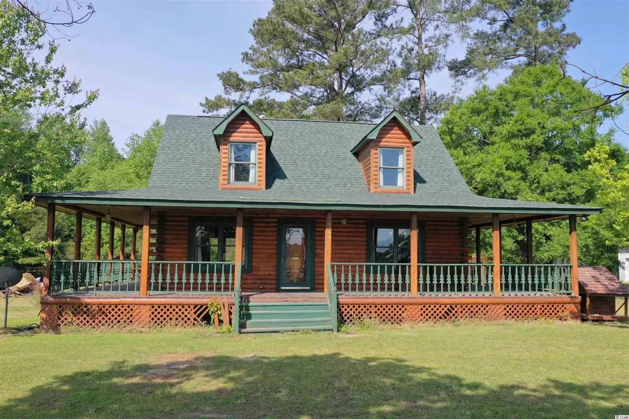 Country living at its best! LOG CABIN HOME WITH A STOCKED POND! Come enjoy fishing from your backyard. Also a nice size storage shed is on the property. This home sits on an estimate of 1.85 acres. Roof was replaced in 2020 and upstairs HVAC was replaced in April 2021. NO HOA'S!!! Estimated at 48 miles to North Myrtle Beach, SC. No HOA's! Buyer is responsible for all measurement verification.