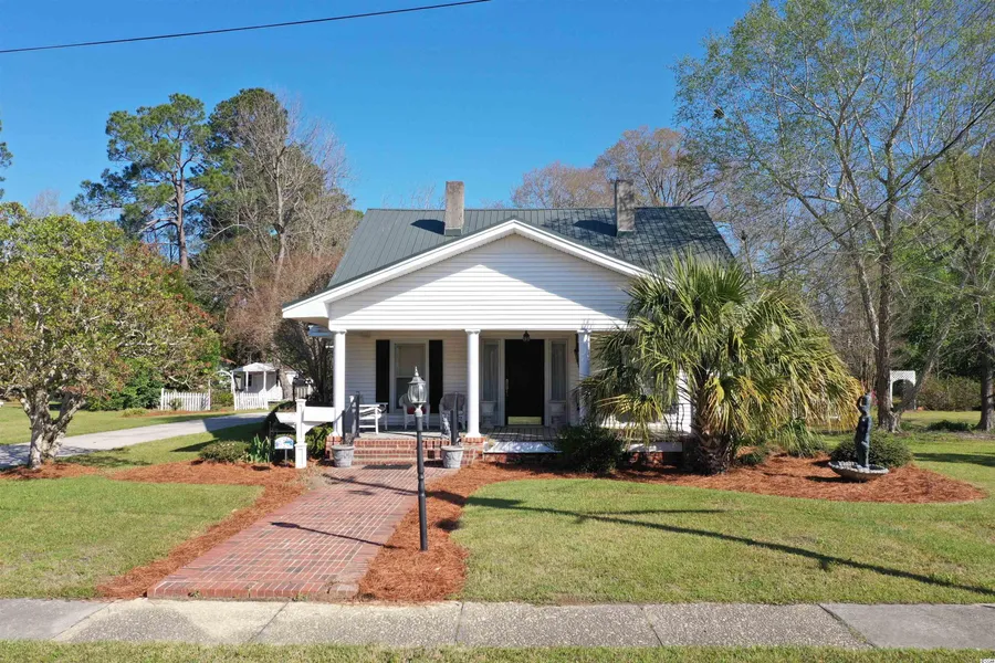 This home sits on an estimate of .83 of an acre and was built in 1927. It features 4 FIREPLACES, beautiful wood beams in the living room and kitchen, and a nice size Carolina room that overlooks the backyard. There is also a HUGE carport/workshop! This home is located right in the heart of Mullins, SC! Quick and easy access to all the shops and restaurants Mullins, SC has to offer. Sellers are willing to sell some furniture for additional cost, with the purchase of the home. Buyer is responsible for all measurement verifications.