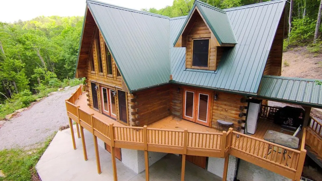 Great log home sitting on 34.65 +/- wooded mountain acres. This home has 3 bedrooms with 3.5 bathrooms with large master on main level. Home features hardwood floors, wrap around porch, granite in kitchen and bath rooms and metal roof. propane fireplace is good source of emergency heat. Home also features a 3 car detached garage. Home could be 5 bedrooms with basement rooms.