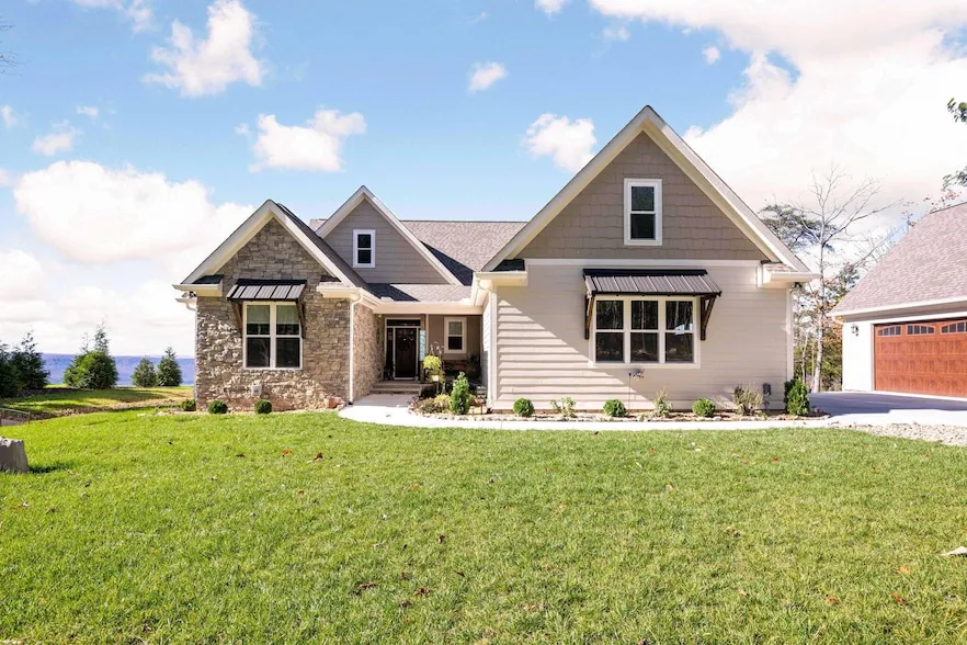Welcome to 3745 Raulston Falls Rd, a charming craftsman-style home nestled on nearly 1.25 acres, offering stunning bluff views of the winding valley. With over 2,200 square feet of thoughtfully designed space, this home combines modern amenities and breathtaking views. The open-concept layout creates a smooth flow between the living, dining, and kitchen areas, perfect for entertaining. The spacious living room features vaulted ceilings with wooden beams and a floor-to-ceiling stacked stone fireplace, complemented by large windows that showcase one of the best bluff views in the neighborhood. The kitchen is a cook's dream furnished with high-end ''Monogram'' Appliances and stunning quartz countertops. Step outside onto the covered back porch, an ideal space for relaxing while enjoying the panoramic views. The master suite offers a peaceful retreat with large windows and a luxurious en-suite bathroom featuring a walk-in dual-head shower. Two additional bedrooms provide space for family or guests. The home includes a two-car attached garage with attic access where potential additional space could be builtout above the garage. Also, there is a separate detached two-car garage equipped with heating and cooling, and a dog wash. This additional 576 square feet also offers the opportuninty to finish-out the second floor to add an office or hobby space. Both garages have a decorative upgraded finish on the floor. Located in the sought-after Jasper Highlands community, this home offers access to incredible amenities, including two pools, pickleball courts, parks, scenic trails, the Top of the Rock restaurant, Fiery Gizzard Pizzeria, and a wellness center. Also join in on the fun when this community gets together. Lifestyle, Luxury, and Community.... great reasons to make this your home. Don't miss your chance to live in this desirable community schedule your private tour today!