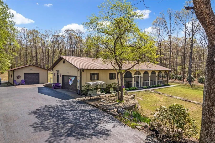 Move in ready 3 bedroom, 1500 sq. ft. +-home on 10 level beautiful landcaped acres. Gas log fireplace in family room w/ built-in bookshelves, alarm system, & ceiling fans in every room .Home has many updates with new harwood floors, Kitchen cabinets & stainless steele appliances. To many updates to list! Lots of storage space & LARGE covered screened front porch and back porch. Fenced back yard with apple & peach tress, 2 blueberry bushes and grape vines. Pole barn is situated at the back of the property with separete driveway and seperate gate. A large Gazebo and Hot house/greenhouse with water. Private location with custom stone patio & stone wall, w/ a double car garage with new epoxy floors. PLUS a double car detached garage w/ workshop. Home also has a concrete handicap ramp on the side entrance of home. Close to hiking trails (Foster Falls, Fiery Gizzard, and Deny Cove). All of thi...