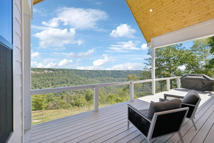 TENNESSEE, that's the place to be!!! Gated community! Bluff Lot! Welcome to this stunning modern bluff-top retreat in the highly sought-afterJasper Farms of Jasper Highlands. Tucked away at the end of a quiet cul-de-sac on Crockett Pointe, this home offers ultimate privacy and jaw-dropping views--without a view from the road. As you step inside, you're immediately greeted by an open-concept design that seamlessly blends the indoor luxury with the breathtaking outdoor beauty of the Cumberland Plateau. The living room flows directly onto a spacious deck through an expansive folding glass wall--perfect for sipping your morning coffee while watching the sunrise or enjoying the cool evening shade as hawks soar through the bluff valley. This thoughtfully designed custumn built home features 4-bedrooms and 3 full baths, including a private main suite that's separated from the two additional gue...