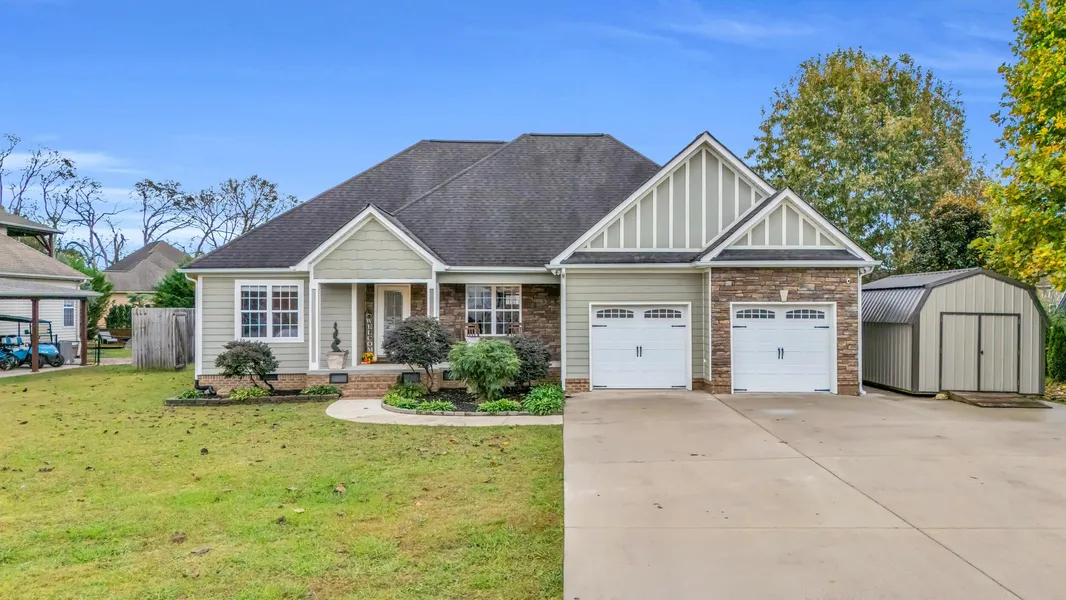 Welcome to your dream home in the highly sought-after Julie Lynn Subdivision of Jasper, Tennessee! This gorgeous Craftsman-style home boasts stunning curb appeal with its beautiful stack stone and board-and-batten sidingyou'll be captivated the moment you arrive. Located on a quiet, family-friendly cul-de-sac, this home offers peace and privacy while being just minutes from everything you need. Inside, the open floor plan is a true showstopper, featuring elegant hardwood floors, coffered ceilings, and double crown molding throughout. Wayne's coating in the formal dining area adds a touch of sophistication, perfect for hosting dinner parties or enjoying family meals. The chef's kitchen is a dream! With antique white cabinets, granite countertops, and stainless steel appliances, it's not only functional but beautifully designed. A large pantry offers plenty of storage space, and the cozy breakfast nook provides a sunny spot to start your day. Plus, a separate laundry room keeps everything organized and out of sight. The primary suite is a true retreat, with a luxurious double tray ceiling and a spa-inspired bath. Enjoy double bowl vanities, a large walk-in shower, and a separate soaking tub. The mega walk-in closet provides more than enough space for all your wardrobe needs, and the hidden potty room offers an added layer of privacy and convenience. Step outside and enjoy the L-shaped swimming pool, perfect for hot summer days, surrounded by a private fence. The outbuilding offers plenty of room for storage, a workshop, or whatever your heart desires.