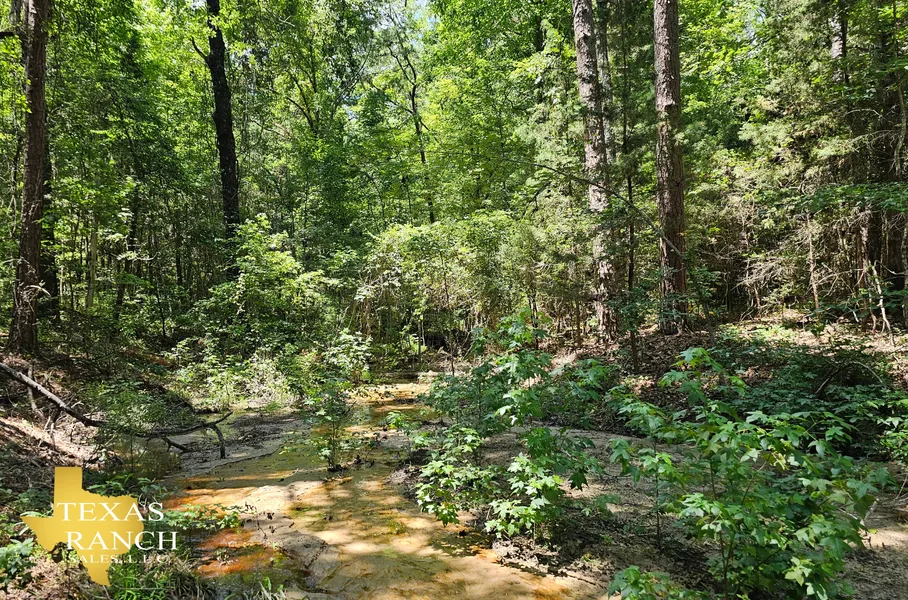 The property is raw land with a dense mix of timber, characteristic of East Texas timberland. Additionally, the property includes one pond and 300 ft of a wet-weather creek, offering natural water sources further enhancing the attractive landscape.