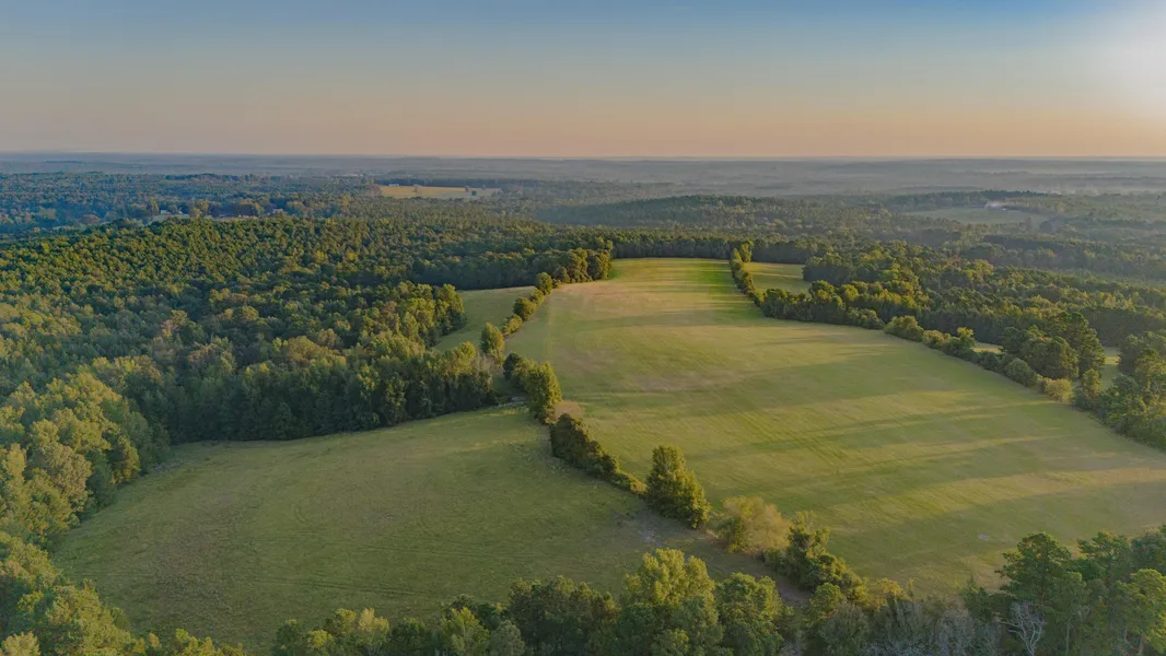 Bear Creek Ranch offers various outdoor opportunities with its diverse countryside. The ranch features a mix of East Texas timberland and approximately fifty acres of pasture, half of which are improved pastures. These pastures typically yield around 80 round bales per cut. Trails meander through the property, leading to improved pastureland that offers great vantage points over the rolling, timbered hills. Wildlife is abundant with regular sightings of whitetail deer, hogs, and turkey. The property also contains muscadine grape vines, a small pond, and almost half a mile of wet-weather creek. Additionally, the current owner holds an agricultural exemption for the property.