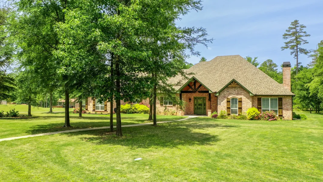 Gorgeous! Immaculate 2017 custom built home located in Dogwood Park on the North shore of Lake O'The Pines is now available. With approximately 3,000 sq feet of living space and 1,200 sq feet of garage with storage/work area, this home is sitting on a beautiful landscaped block. The land measures right at 2 acres and is landscaped with lots of shade trees, flower beds, a fenced garden and an extra large yard for the kids to play. The 3 bedroom 3 bath home has a split master bedroom with a sitting area and the master bath has a wonderful walk in shower, double sinks, lots of cabinets and a separate water closet. The large walk in closet is designed for His and Her areas. The other bedrooms are very spacious with their own bathrooms and large walk in closets. The home is open style living with the dining between the kitchen and living room. The gourmet kitchen has all the space you could ever want for the Cook in your life! Beautiful cabinetry with pull out drawers, spice racks, etc. plus granite counter tops with a lovely backsplash. Five burner propane stove top, built in electric oven, micro wave, dishwasher and refrigerator*. The center island houses a pull out double trash bin, pull out drawers, built in bookshelves for your cookbooks, plus tons of work space for food prep. The long breakfast bar adds additional sitting for those get togethers. Off the kitchen is a perfect pantry with space for a deep freezer and it also has a built in dish or china hutch. This home has two living areas, the larger one just off the kitchen and the second with a fireplace and corner windows that gives you views of the back yard and patio. The office has custom built bookcases, could also be used as a game room or toy room. French doors from the living area open to a large covered porch/patio that is very private. High ceilings throughout the home, wide baseboards, ceramic tile through out, great storage space, ceiling fans, built in security system, 500 lb propane tank under ground, watering system for the yard all around the home, GENERATOR, floored attic, foamed insulation keeps the attic at room temperature, 2 or 3 car garage with bonus room, aerobic septic system, limited view of the lake but only minutes to a public boat ramp. New Heat Pump added 5/11/23 with 10 year warranty. This home has everything you are looking for!
