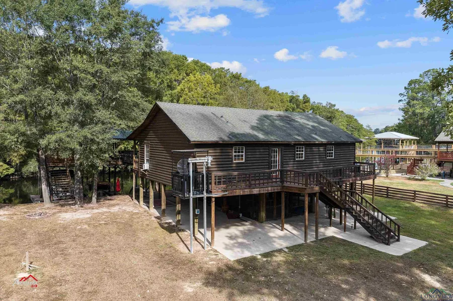This is a Must See Home! Beautiful view of Big Cypress Bayou from every room! This home has 2 big bedrooms in the main house, & a bedroom on the deck, all with their own bathrooms! Huge deck over the river, that is perfect for entertaining. There are 3 boat slips, two with lifts, under the outdoor deck, & 2 covered parking areas under the house. There is also a screened in area under the house, that is perfect for storage or a game area. There is an elevator on the outside of the home.