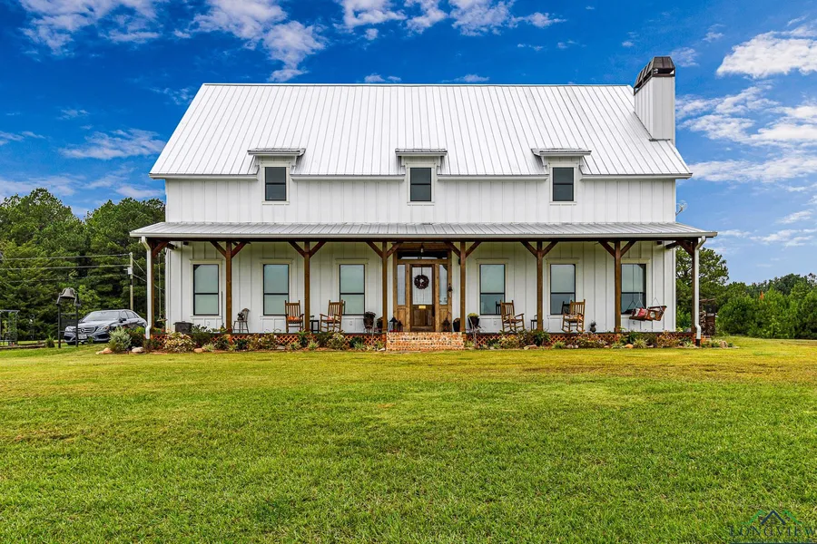 Situated on a vast 9 acres just minutes away from historic Jefferson, Texas, is this unique 5,407 square feet home that sits on a hilltop, hence the address!! This masterpiece shows where luxury meets practical comfort in this stunning 4 bedroom, 3.5 bathroom house! The upstairs has 2 bedrooms, along with the media room, workout room with storage area, and a game room with a shuffleboard, all of which overlook the living/dining room downstairs. Step inside and be greeted by the spacious upstairs loft featuring a large bookcase and the elegance of granite countertops that perfectly complement the modern farmhouse kitchen. As the evening cools down, cozy up next to the large brick fireplace and create memories that will last a lifetime. Escape to your own private oasis in the backyard, complete with a refreshing pool featuring a swim jet and a relaxing hot tub, encased by a cedar fence all the way around, with a custom bathroom accessible from the pool area! All of your pool controls and equipment are protected against the elements and easily accessible with the control room at the end of the pool. Don't forget about the convenient utility shed, providing ample storage for all your gardening tools and outdoor equipment. Behind the utility shed, you can find the standby home generator along with solar panels that contribute to a very low monthly utility bill for this fully electric home. With a garage and additional parking spaces nearby, you'll never have to worry about finding a spot for your vehicles. In front of the house is a stocked pond with a dock to enjoy at your own pleasure! With so much to offer, this property truly provides a well-rounded country living experience. Located in a desirable neighborhood, you'll have easy access to schools, parks, shops, and restaurants! Grab this one before it is gone! Schedule a showing today to view this one of a kind home!!