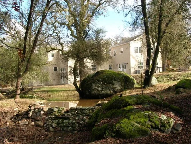 Beautiful and contemporary villa, set privately on 7.22 acres overlooking a flowing stream and pond. 3,247 square feet of spacious living with 4 bedrooms, 3 baths, eat in kitchen and separate dining room. Slate floors throughout, high ceilings, skylights and artistic lines make this home a showpiece. In addition to the main home, you will find a large guest suite with full bathroom and kitchen ready. Also, enjoy the detached two car garage and shop with a full second story loft. Flowing stream with giant boulders that make a cave, complete with Indian grinding holes! Last, but not least, enjoy the beautiful pond that's full during the wet season. Call today to see this one of a kind estate property!
