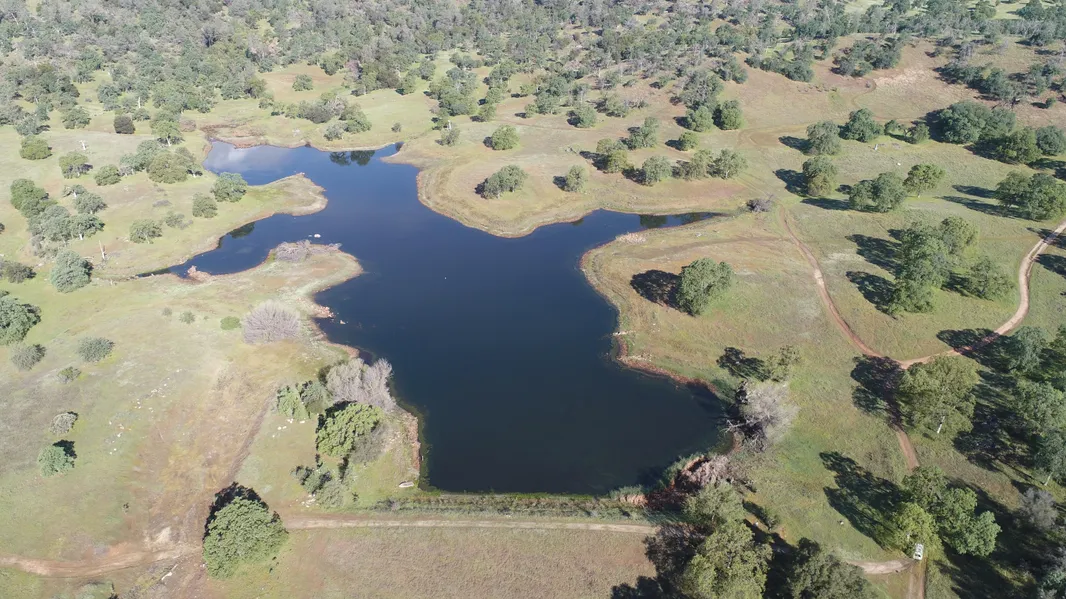 Imagine owning a Beautiful 400 Acre Ranch in the Sierra Nevada Foothills with a Sprawling Lake stocked with huge largemouth bass; but not just any lake, this lake is rumored to be the largest privately owned lake in all of Mariposa County. The Dam was built by the Army Corps of Engineers back in the 1950's & the lake is licensed by the State of CA. Lake is large enough that current owners claim you even water ski behind a jet ski. The 2 story cabin resting quietly on a ridge overlooking the lake has 1,200+ sq. ft. of living space, 2 bedrooms, 2 bathrooms, an attached garage, & a carport. This unique property is teaming with abundant wildlife, such as deer, bear, wild hogs, turkey, geese, ducks & quail, just to name a few. Perimeter fenced & cross fenced, this expansive acreage is divided into 2 legal parcels, so, in total, it would be possible to build 3 more homes, in addition to the existing cabin (please confirm with Mariposa County). 100+ GPM Well not only adequately serves for domestic purposes, but also irrigates the perennial Alfalfa field. This hunting/ fishing/ recreational paradise is very private & remote. Many people come to Mariposa to enjoy the beauty of Yosemite National Park, but this peaceful & serene property is a destination unto itself.