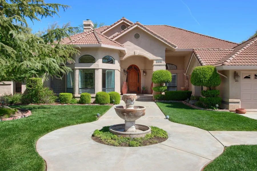 Luxury living on 6.25 acres in the foothills, an hours drive from Yosemite Valley and just 30 minutes to UC Merced, with spectacular views from every room. This spacious, single-story home is ideally suited for entertaining, remote work, and family life. At its heart is a magnificent great room with soaring ceilings and windows, a formal dining area, wood-burning fireplace, and built-in bar. Steps away, the large, open kitchen with granite countertops looks out onto the breakfast nook and a cozy den with its own fireplace. Two secondary bedrooms share a full bath with shower and jetted tub on the south side of the house. A small hallway on the north side leads, first, to a hexagonal study with a full bathroom, and then to the magnificent primary suite with its own sitting area, spa tub, gas fireplace, and glass doors leading to the heated pool and Japanese gardens. A half-bath is located...