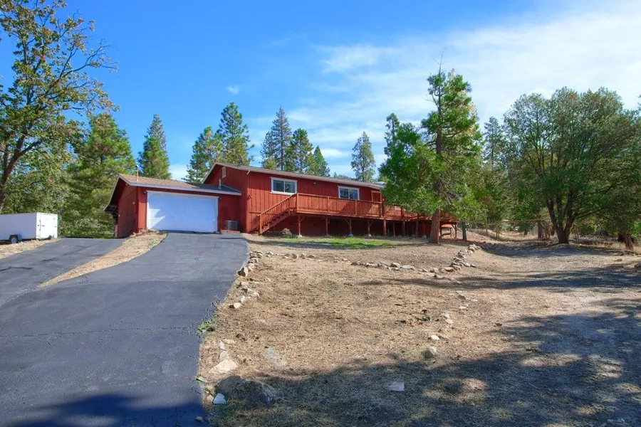 Enjoy the mountain retreat feel with this 3 bedroom, 2 bath home! Lots to offer including updated interior, above ground swimming pool and a greenhouse! Enjoy the front deck views of tall Cedars and bring the outdoor feel inside with tongue and groove ceilings and skylights in the great room. The dining area and kitchen shared the open floor plan with a centrally located wood stove, great breakfast bar and kitchen island with stainless steel appliances. Convenient laundry room with door to the back yard. Spacious guest bedrooms and a rustic guest bathroom with lovely tile floor, claw foot tub and wood and tin accents. The master bedroom offers comfortable surroundings with a large master bathroom with double sink vanity and a gorgeous tile and rock walk-in shower. Ceiling fans throughout. The back yard has an above ground pool, greenhouse and garden area, patio area with fire pit, covered storage area, additional storage shed and room for more on .85+/- acre. The paved driveway leads to the 1 car attached garage and has lots of room for more parking. Located in a wonderful mountain neighborhood with a fire department nearby and Yosemite National Park is a short drive away. This wonderful home has wonderful upgrades and lots to offer you! Come and see it today!