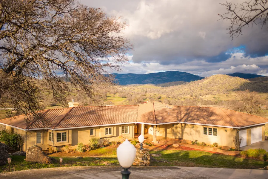 Beautiful Country Estate in Mariposa Countys premier electric-gated community, Whispering Oaks West in beautiful Catheys Valley conveniently located a mere half hour above Merced and less than an hour from Yosemite National Park! Country living is easy in this Mediterranean home featuring a beautiful and spacious open layout with breathtaking views from every angle! Huge open kitchen with all modern appliances and giant stovetop island, totally open to a very large dining room, beautiful living room with fireplace and a media room, which all open out to balustrade decks and screened-in porches inviting you to cook outdoors and enjoy your pristine views! Giant master en-suite bedroom features double French doors, romantic fireplace, windows galore, jetted soaking tub, double vanity, hardwood floors, beautifully tiled shower, massive walk-in closet and plenty of room for all of your dr...