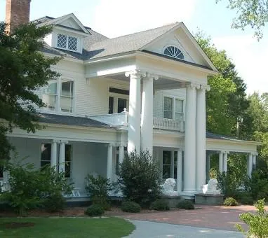 Elegant circa 1904 Greek Revival historic home is situated behind a formal entrance consisting of 2 columns supporting 2 historic Scottish carriage gates which date back to 1785. The gates open to a long brick walkway of 375 feet. Two additional gates open to a long circular drive. The house has much charm and character including 12 fireplaces with several massive ornate mantels and black marble hearths, high ceilings, hardwood floors and ornamented moldings. The house has been rewired, replumbed and has 4 gas-pac systems. The entrance hall, separating the 2 formal parlors, has gingerbread trim and an arched entrance to the grand staircase. A second staircase is located in the rear hallway. The banquet size dining room is behind the right parlor and has a plaster medallion in the ceiling. The 2 formal parlors have plaster medallions and plaster crown moldings. The butler's pantry and kitchen have marble floors, and the kitchen has built-ins and numerous cabinets. A beautiful sunroom is part of the kitchen and also serves as a breakfast nook. A screened porch at the rear of the home adjoins the sunroom. A large utility room, powder room, bedroom and bath with marble interior and floor are downstairs. The second floor consists of 4 bedrooms and 3 baths. The master suite has a den, bedroom and large bath. The upstairs center hall has an arched entrance to the balcony. The wraparound veranda has a porte-cochere and there is a 3-door carriage house. An old tenant house is also on the property. The yard is beautiful with trees and shrubs and has been the scene of many veranda parties. The property consists of 14.2 acres and is located in the historic district. Has bed and breakfast zoning. All for $550,000.