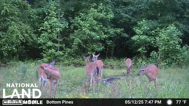 Secluded large food plot with a meadow/pasture surrounded by and hidden from any road in the middle of 20 + year old thick pines, natural hardwood forest and a large flat stream.