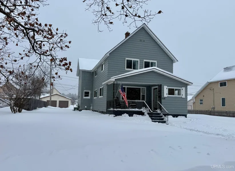 Set on a quiet, tree-lined street in Negaunee's sought-after Beverly Hills neighborhood, this classic American Foursquare blends historic charm with modern convenience in a highly walkable setting, just steps from Miners Park, Teal Lake, and peaceful sidewalks that make exploring the area a delight. This beautifully maintained 1890 two-story residence boasts over 2,300 square feet of living space with four bedrooms and two bathrooms. Situated on a spacious lot, the home features a covered front porch that enhances its welcoming curb appeal. Inside, discover an open floor plan with expansive living and dining spaces, each with luxury vinyl tile flooring. The bright and airy living room flows seamlessly into the spacious dining area, creating a perfect environment for entertaining. The renovated kitchen boasts concrete countertops, subway tile backsplash, and a convenient island for additi...