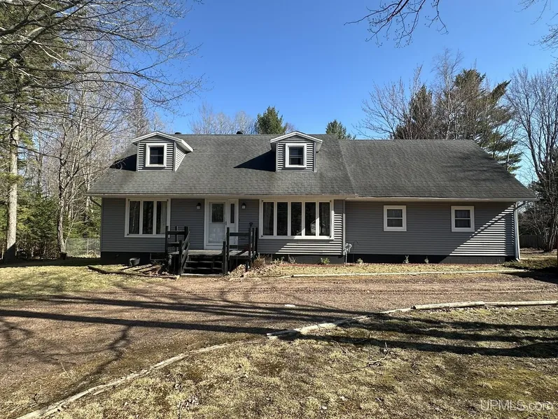 **Charming Cape Cod Retreat on Over 1.3 Private Acres** Welcome to this well-maintained, solidly built Cape Cod-style home, nestled on just over 1.3 acres and surrounded by mature trees for ultimate privacy. This property hasn’t been on the market for years—don’t miss your chance to make it yours! The fully fenced backyard offers both security and seclusion, while the front of the home features a circular driveway and an inviting front porch—perfect for welcoming guests. The oversized attached two-car garage includes a full attic above, offering ample storage or the potential to finish the space to suit your needs. Enter through a spacious mudroom/laundry room complete with a utility sink and a second exit leading directly to the backyard. Inside, the heart of the home is a bright, open kitchen filled with natural light. You'll find abundant oak cabinetry, a central island with a butcher block top, a walk-in pantry, and a charming window over the sink—ideal for watching wildlife as you wash up. Step through the sliding glass door to a private deck that basks in the evening sun, a perfect spot for morning coffee or entertaining friends and family. The main floor features a spacious living room with large windows framing the beautifully treed front yard, along with the primary bedroom conveniently located near the main bathroom. This updated bathroom includes a high vanity, new sink, and a cedar-lined linen closet. A bonus room on this level, currently used as a craft room, offers flexible space for a home office, playroom, or guest room. Upstairs, you’ll find two generously sized bedrooms—each with charming window seats, large closets, and plenty of natural light. A full bathroom with double sinks completes the upper level. Built to stand the test of time, this home includes modern updates and thoughtful features: a newly drilled well (2020), updated siding (2015), and three heat sources including a Lennox natural gas furnace, a vented wood stove, and electric heat for backup. The full basement offers endless possibilities as a blank canvas for finishing. Ideally located just minutes from town and offering an easy commute to Marquette, this home delivers space, comfort, and privacy—all in one package. **Schedule your private showing today—this gem won’t last long!**