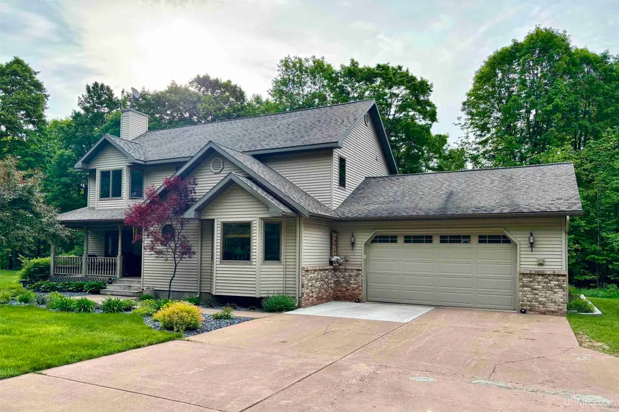 Tucked at the base of a serene hillside in Ishpeming Township, this thoughtfully designed 3-bedroom, 4-bathroom home offers over 3,000 square feet of finished living space spread across three levels. Situated on 5.12 acres, it strikes the perfect balance of seclusion and convenience‹”just minutes from town. The main floor welcomes you with a spacious living room featuring a cozy fireplace, a formal dining area, and a well-laid-out kitchen. A charming sitting room with bay windows provides the perfect spot to relax, while main-floor laundry and two half baths add practicality. Upstairs, the primary suite includes a walk-in closet and private bath. Two additional bedrooms, a full bath, and a loft‹”ideal for a home office, reading nook, or play area‹”complete the upper level. The finished basement offers even more living space with a large rec area, an additional bathroom, and a roomy utility space. Step outside and enjoy your own slice of nature, complete with an in-ground sprinkler system to keep the landscape lush and green. With an attached 2-car garage, public water, and location in the desirable NICE Community School District, this move-in-ready home is a rare find‹”offering comfort, space, and privacy all in one!