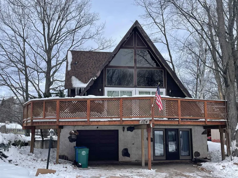Beautiful A-Frame Chalet in the desirable Shiras Hills Subdivision! This charming home offers numerous updates, including an updated kitchen with granite countertops, a renovated bath, a new roof (2025), and newer windows and porch doors. The spacious layout features 3 bedrooms with the potential for a 4th in the lower level, along with 2 baths. All bedrooms are generously sized with high ceilings and ample closet space. The private master suite occupies the upper level and includes his-and-her closets, and a half bath. Two additional bedrooms are conveniently located on the main floor. The main level boasts an open-concept kitchen, dining, and living area centered around a warm, wood-burning fireplace. Sliding doors from the living room open to a large wraparound deck, perfect for entertaining or relaxing outdoors. The lower level expands the living space with a welcoming family room featuring a second fireplace and room to create a 4th bedroom if desired. Situated on a large corner lot, this home offers exceptional privacy while still being close to everything. Its prime location is just a short bike ride to the bike path, South Beach, and downtown, and only minutes from hiking trails and the ski hill. Taxes are not $0 and will change with transfer of ownership. All offers due Sunday Dec 14th 10:00 AM