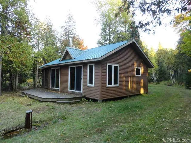 Over 77 acres with about 1460 feet of frontage on the middle branch of the Escanaba River for sale. Located about 6 miles South of Gwinn this property is outstanding river frontage on one the U.P. finest rivers systems. The river has good flow in this location with higher, yet approachable banks. The bottom is rocky and suitable for both wading and float fishing. The acreage is a mixture of mostly conifer and cedar with some mixed woods along the river banks. There is a nice 24x20 cabin that has hardwood floor, tongue and groove interior, vinyl siding, and a metal roof. A woodstove provides the main heat with propane space heater as back up. There is a drilled artesian well along with a solar power system. The cabin is neat, clean, and simple. The main cabin has a composting toilet as well. There is a guest cabin which houses the water and power system and also has a woodstove, propane space heater, and small bathroom with a shower. In addition to the two cabins there are two small storage sheds and a 24x32 pole building with a concrete floor. The buildings are modest, but very functional and in great shape. This parcel is located at the end of a private road in a remote location adjacent to a large block of State land. The trout fishing is outstanding in this stretch of river. The cabin site provides nice views both up and downstream. A screen room on the river side of the camp makes a great place to site and take in the sites and sounds of this peaceful environment. The access road is privately maintained and the property is located about 3 miles from the County Road. This is all within a 15 minute drive of Gwinn where you can get supplies as needed. The airport is a 25 minute drive as well. This area has a variety of wildlife with good population of deer, black bear, and grouse. Moose and wolves have been seen nearby as well. Winter vehicle access is challenging but possible and this location is a great place to snowmobile from as there is a main trail nearby.